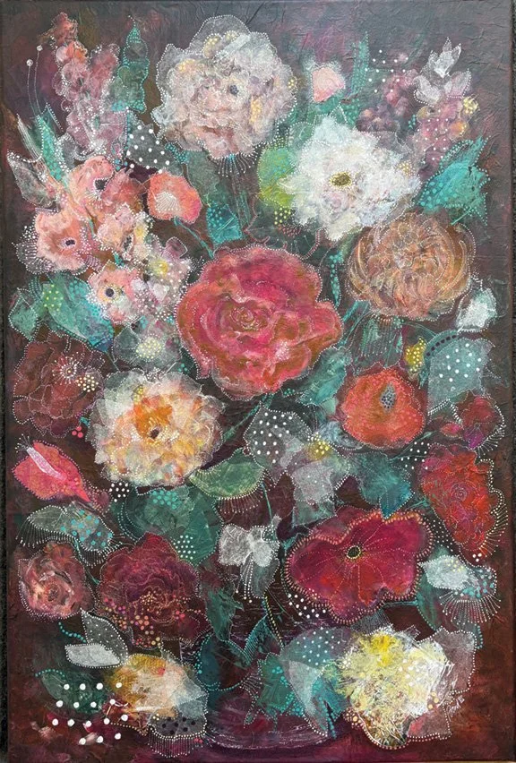 Physical challenges led me back to art! I couldn’t wait to get into my studio each day, feeling as though I had lost precious time without practicing my craft. Like a madwoman, in 2024 I furiously began producing art at a speed even I couldn’t believe!